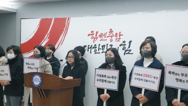 ▲ 충남 14개 가정폭력 지원단체가 22일 도청 프레스센터에서 기자회견을 열고 정부에 가정폭력 대책 강화를 촉구하고 있다. 최신웅 기자
