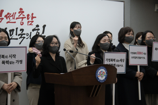 충남 14개 가정폭력 피해자 지원단체가 22일 정부에게 가정폭력에 대한 근본적인 대책을 촉구했다. 윤신영 기자.
